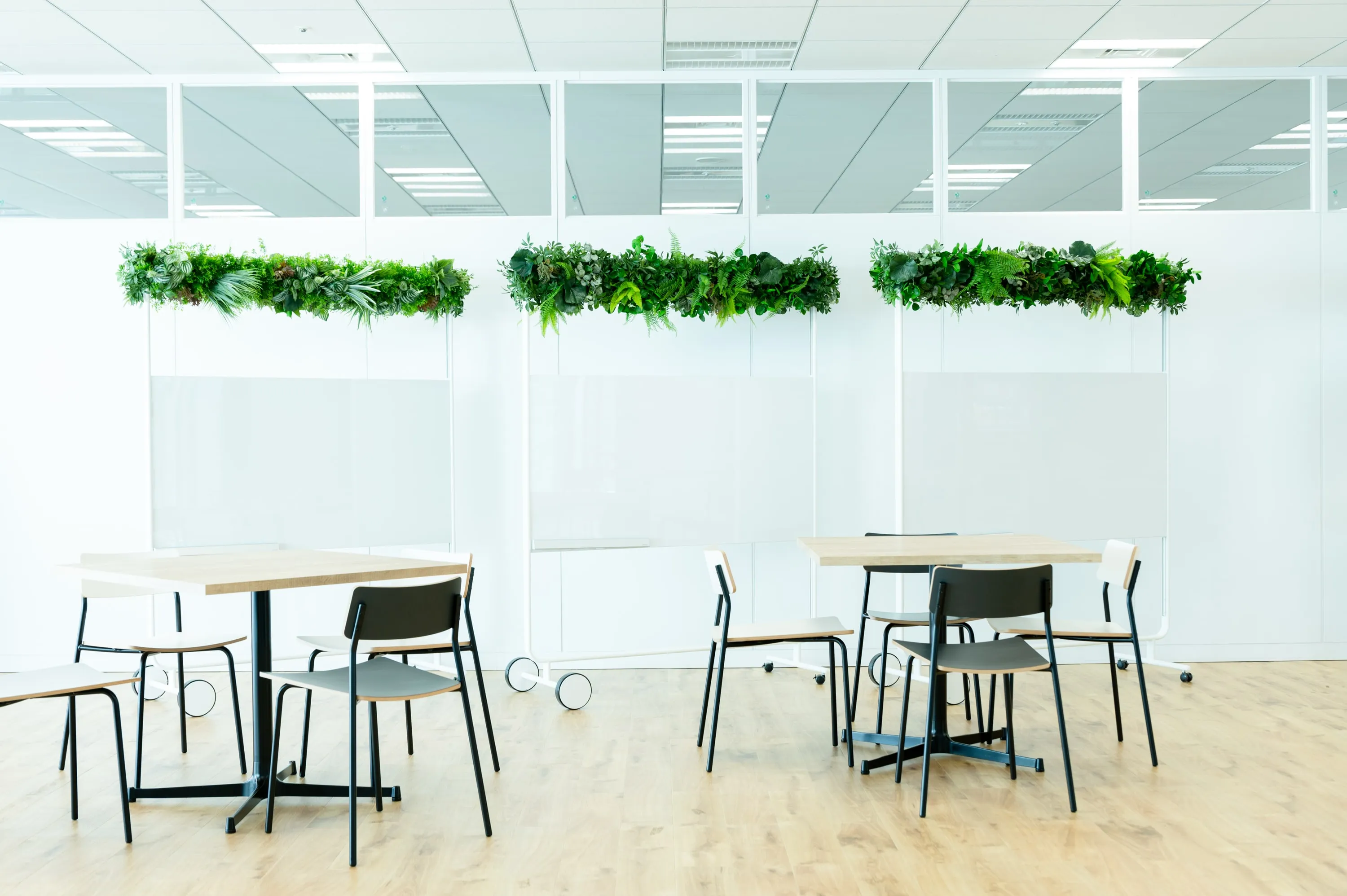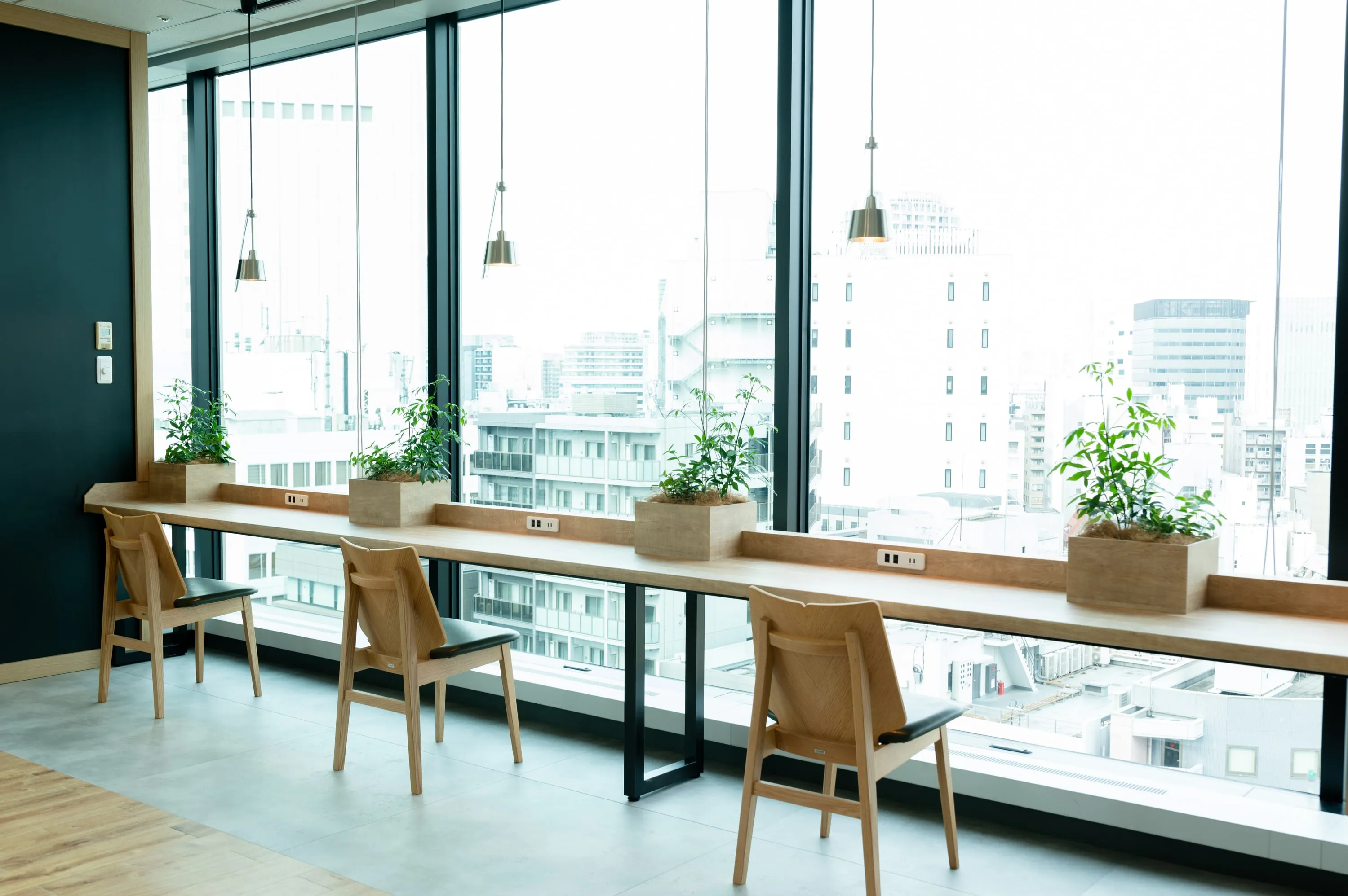 執務スペースに観葉植物を置く、植栽や壁面緑化を取り入れることなどでクリアすることができます。