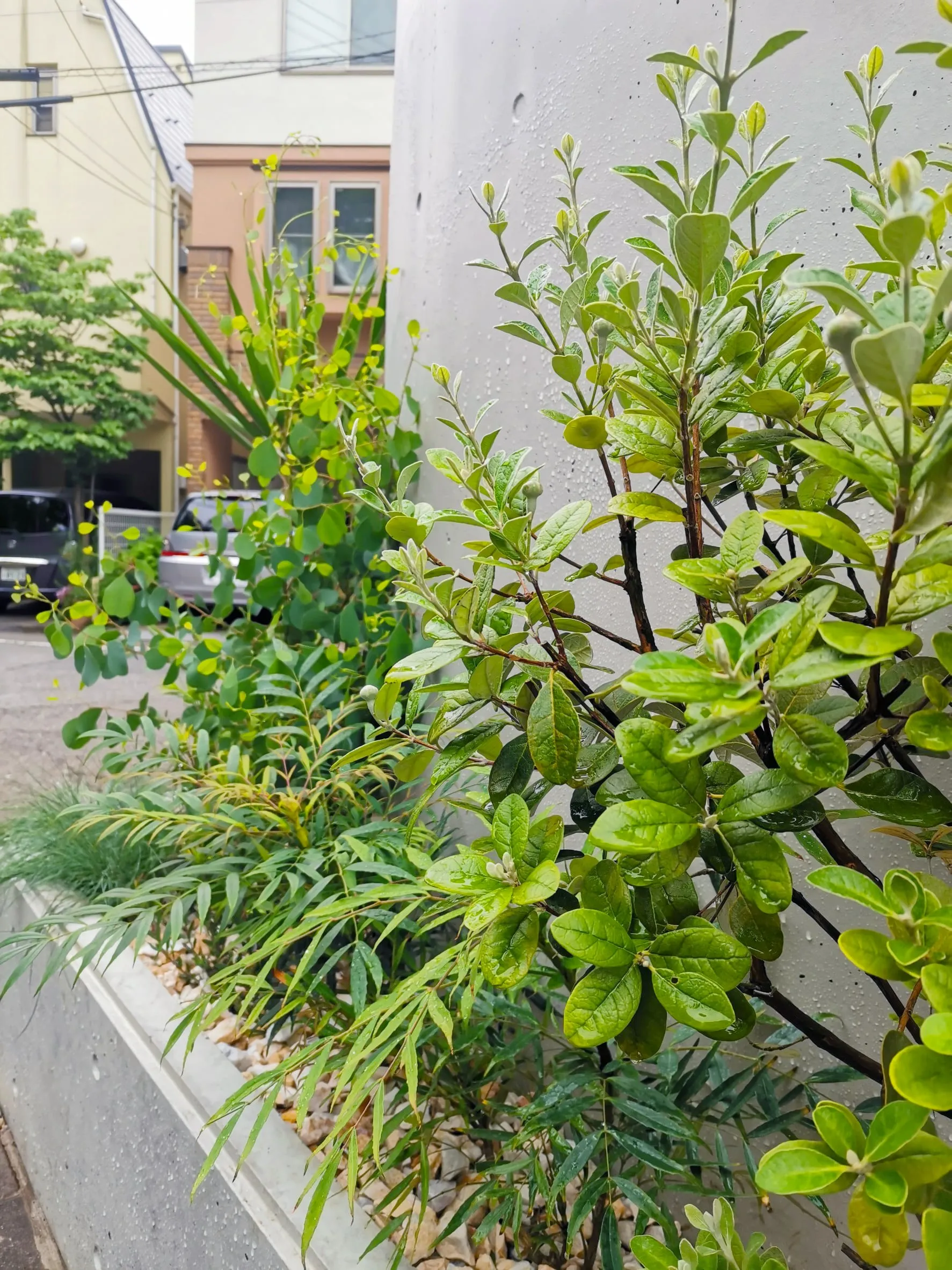 グリーンの価値観が変わりました!様々な植物を植えてるのに全体的に統一感のあるデザインに仕上げていただきました。家の壁にもとてもマッチしています。デザインだけでなく、要望していた「日々の手入れのしやすさ」も叶えてもらえました。普段街では目にしたことのない珍しい植物もあり、家の前を通る人にも好評です。