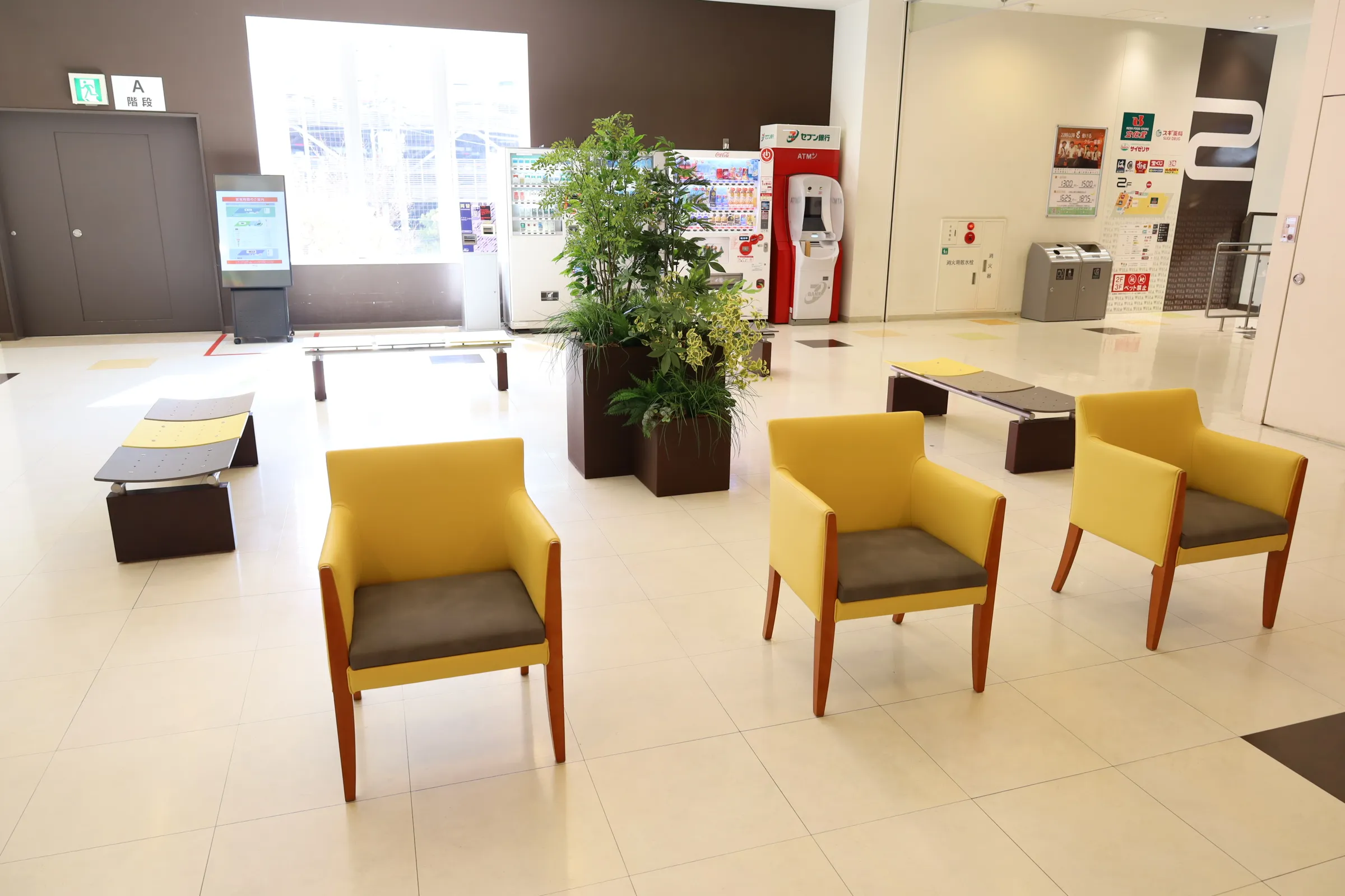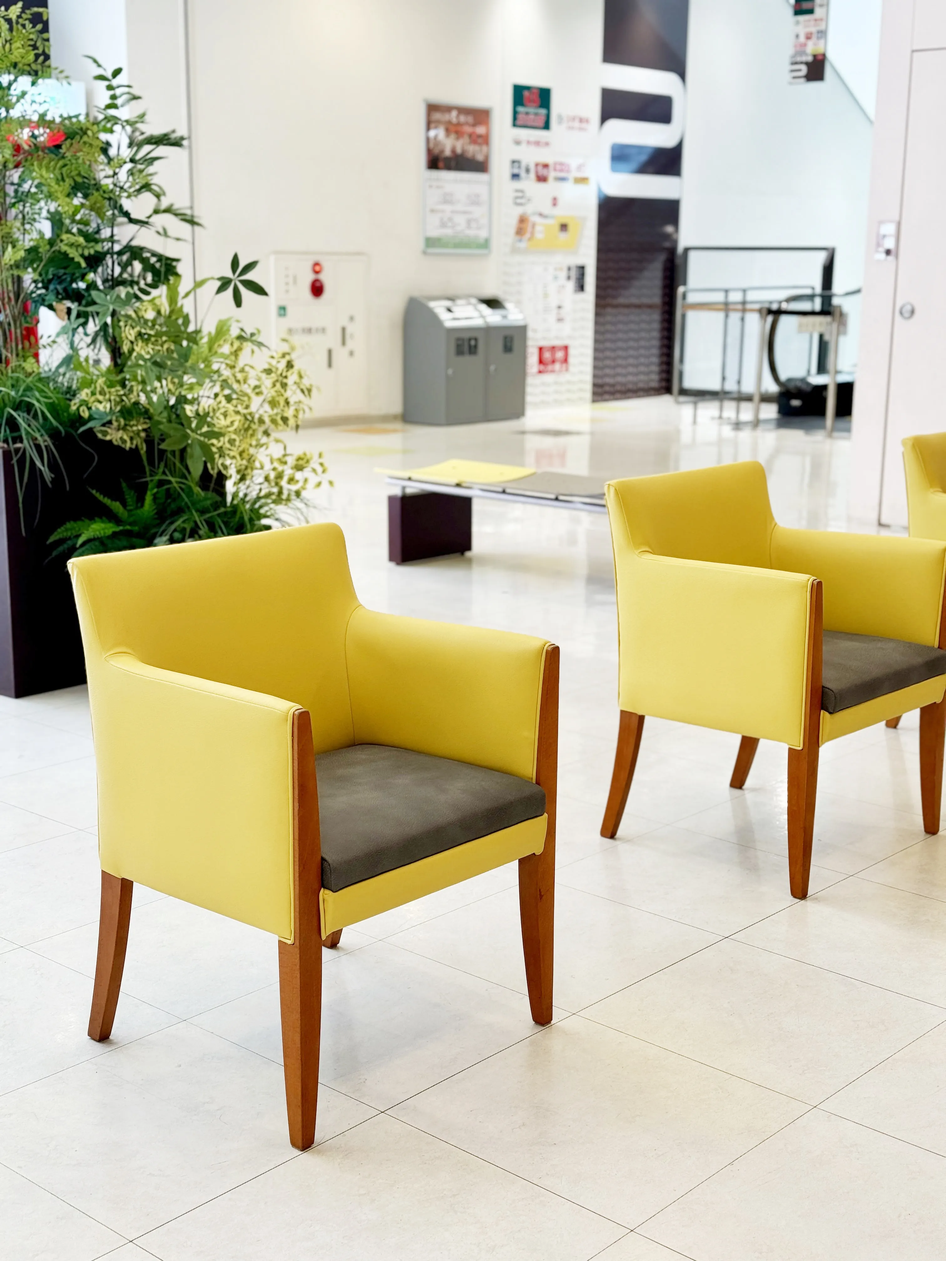 大井競馬場前ショッピングセンター「ウィラ大井」の共有部のリニューアル環境演出をヒキダシ|GREEN COMPANYが担当いたしました。リニューアル前の共有部にあったソファやチェアなどの什器は長い年月の使用によって傷みや汚れがついていたものの構造的には問題なく、手を加えてきれいにすればまだまだ使えるものでした。そこで私たちは、「今ある資源を創意工夫工で魅力ある新たなものに」という考えのもと、既存の什器を最大限活用することを軸に環境演出を計画しました。それは、持続可能な社会の実現に貢献することを重視する施主の経営姿勢とリンクする考えでもありました。